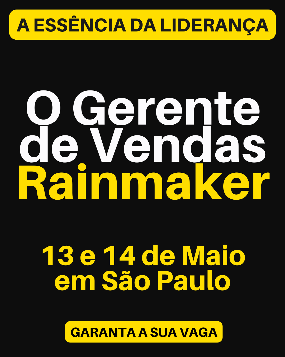 Se você é gerente e está cansado de ver seu time vender no improviso, sem processo, batendo meta no sufoco e vivendo de sorte, esse curso é para você. Em 2 dias de imersão prática, você vai aprender a organizar seu funil, criar previsibilidade e puxar uma cultura de vendas de valor.